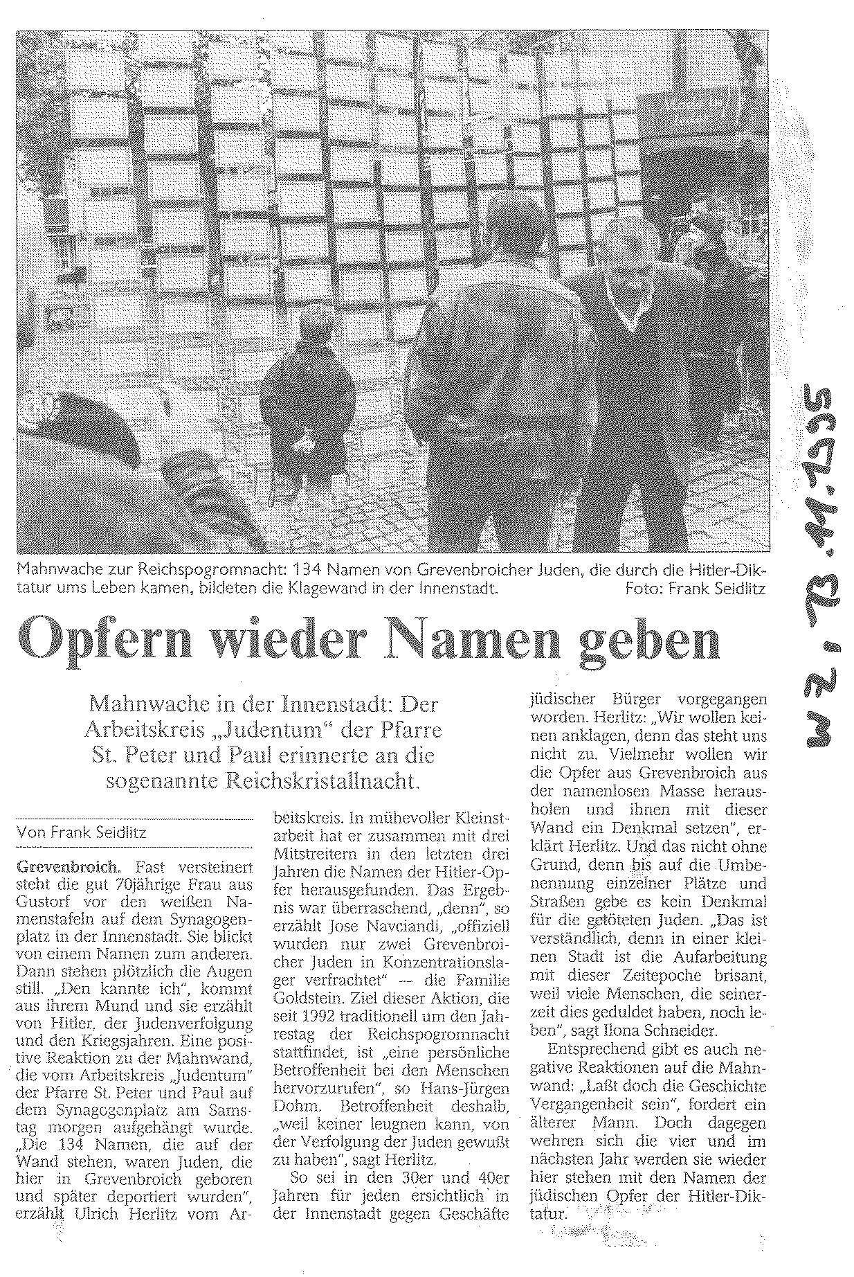 WZ, 13.11.1995 - Opfern wieder Namen geben